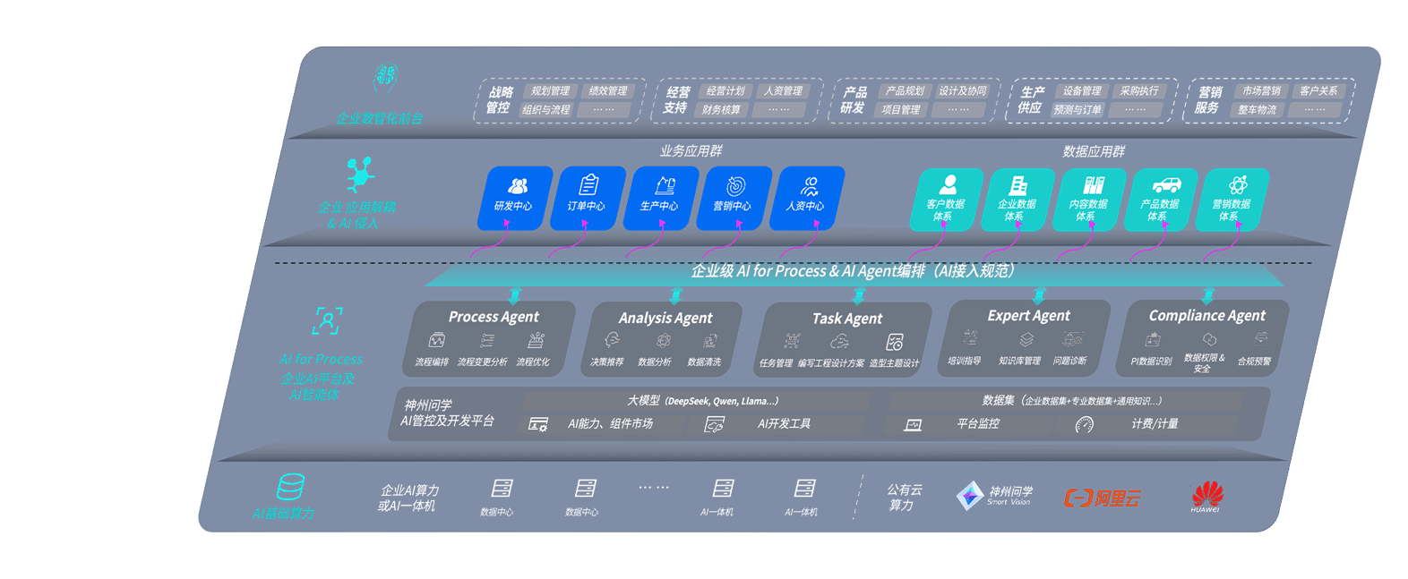 1号娱乐问学智车解决方案是一套基于AI技术的汽车行业智能化系统,,,覆盖从底层算力到顶层AI应用的全栈方案。。。方案由算力层、、、模型层和应用层组成:算力层,,,,方案支持多种一体机配置,,具备云端灵活部署、、多云适配以及动态优化计算资源的能力;模型层,,1号娱乐问学平台版提供了企业级AI应用一站式构建与管理平台,,支持基于后训练强化技术的汽车企业专属模型的训练、、、、评测和运营;应用层,,1号娱乐问学DeepSeek版提供包括超级员工、、智能招采、、、、智能营销、、智能客服、、AI for BI等一系列解决方案,,可助力汽车行业实现数字化转型,,,让管理更智能、、、响应更敏捷。。。。