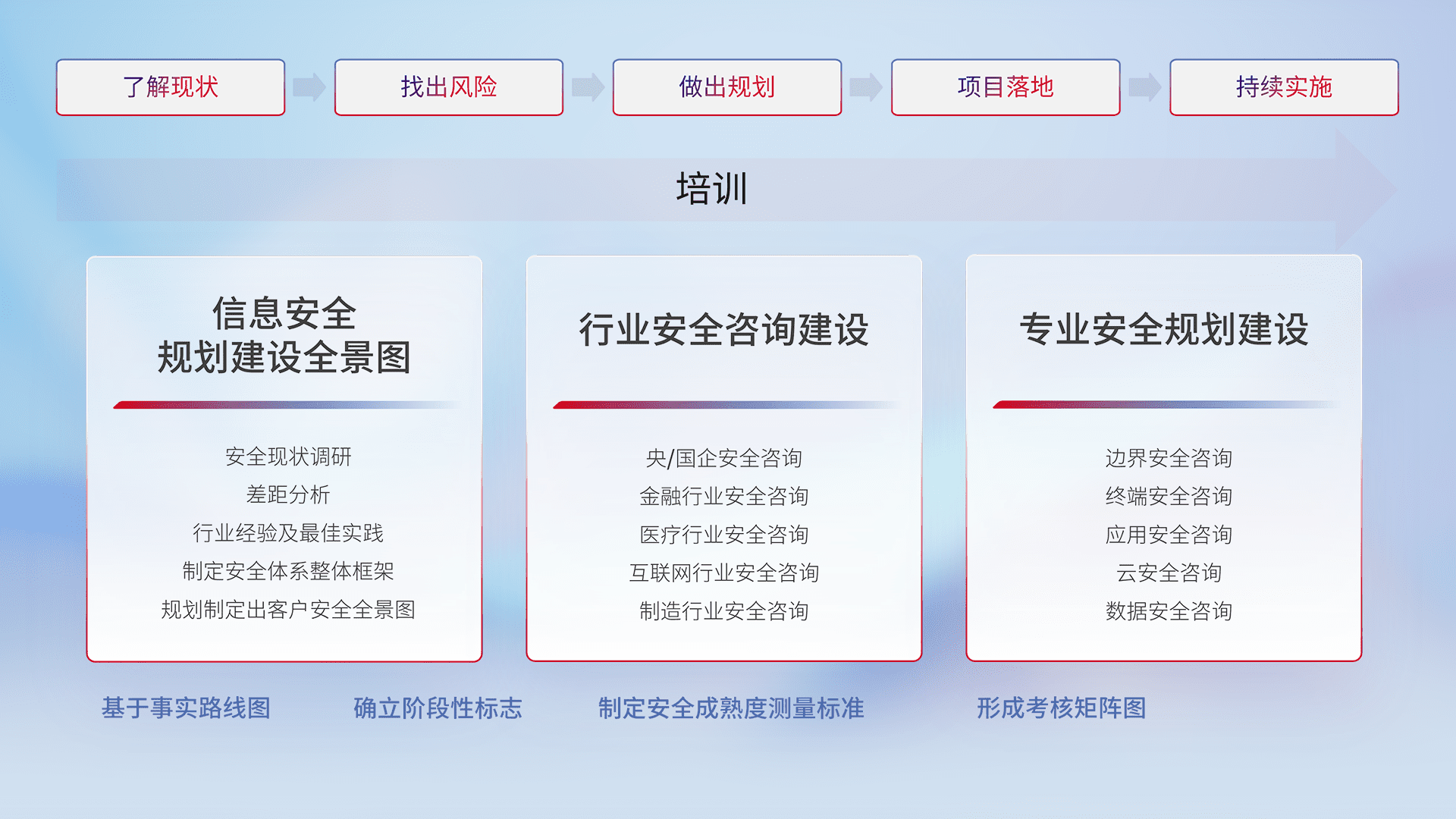 通过专业的法律咨询解读、、、、合规架构体现、、、、差异化解决方案、、测试实施支持等服务,,为客户量身打造等保合规体系。。